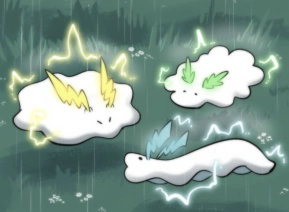 Zing Rays are stingray-like animals with colorful protrusions on their heads. They float in the air during thunderstorms and zap any prey that stands under them.
