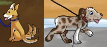 Dogs on a leash.