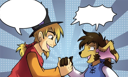 Jake befriended Rhea and Ramirez while they were quite young. They apparently met during a Winter Solstice Festival, where the Jakkai from Rhea's village in Fuzen'ro Forest travel to Farun to take part in the Human celebrations. Humans are not permitted in the Jakkai village itself by tradition, which was one of the many flashpoints for arguments between Rhea and village elder Stonepaw.[3] Despite this, the three friends made a promise that some day, they would leave the village and travel the world together.