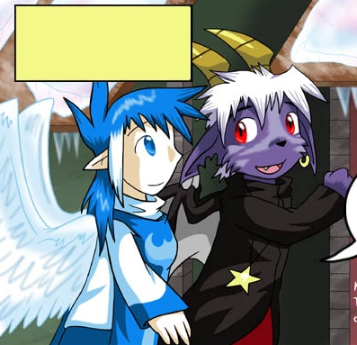 As everyone was drinking tea and eating cookies, Miranda's husband Cliff arrived, only to be surprised that the Demon and Angel he met earlier was in his home. After a short argument from Cliff and Miranda, they properly introduced themselves, along with another fairy named Duster, though Rhea found the name "Sinclair" familiar. Miranda offered the three to travel with them to Weyville despite Cliff's protests, as they could use the protection of an armed Angel; however, the three friends had to leave as to hide Kieri's upcoming curse.