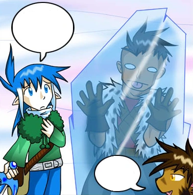 They reunited with Rhea who found Thadius and their supplies, forcing her to run with them as well. They ended up getting cut off in the middle of a frozen lake as Lazuli prepared to finish them off. Through mishap, Lazuli ended up shouting "Snowy's" real name, Kieri Suizahn, which removed the bindings that were on her; allowing her to speak and use her magic once more. The two sides began fighting each other, with Kieri focusing on Lazuli while Rhea and Buwaro fought Talus. Initially they seemed even until Lazuli started overpowering her, forcing her to transform into her rabbit form again.