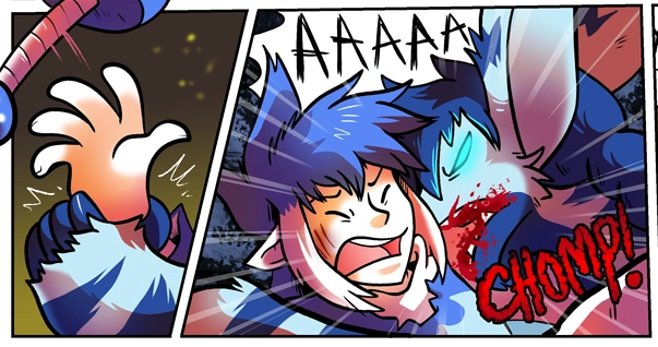 As they fought, Kazai outmatched her in terms of spells and power; and although she would occasionally outsmart him with various tactics, she kept thinking back to how as children he would constantly brag about his prowess. Soon he started to get upset that she was trying to abandon him and without realizing it at first, scratched her with his wolf hands. As she fell, she started to despair from the memories of being left behind long ago, but was able to snap back thanks to seeing her friends.