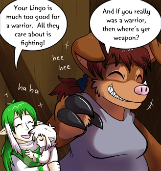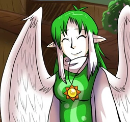 Kinako is a kind woman, one of the first Angels Rhea and her friends met that wasn't critical against Demons. She is friendly and approachable, and when Buwaro first met her, she reassured him that she couldn't harm him as she wasn't a Warrior. She thinks of these as brutish ruffians, especially those of the Suizahn and Sanjulo clans; she thought Kieri's Lingo skills were too good for her to be a Suizahn.