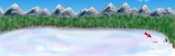 The lake is heavily surrounded by the forest it resides in, with little in the way of a shoreline given how it was first introduced, with a mountain range being visible in the western and southern areas. At the time, snow and ice covered the entire lake and was thick enough for even large individuals to stand on without it cracking or breaking immediately.